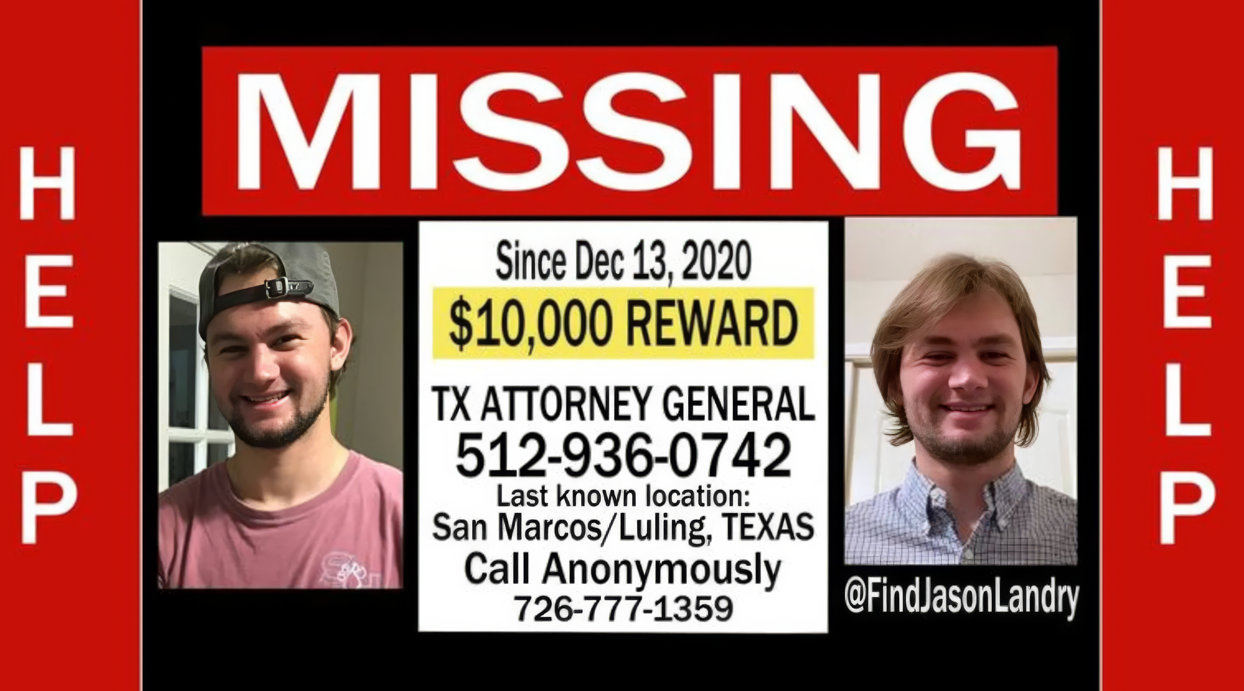 Jason Landry is the son of Senior Pastor Kent Landry (Southminster Presbyterian Church in Missouri City, Texas) and Lisa Landry. Jason was a college student from Texas State University and went missing while traveling home on December 13, 2020. He was in a car accident, but remains missing. His story was aired on Never Seen Again, Season 1, episode 8 which can be found on Paramount Plus.